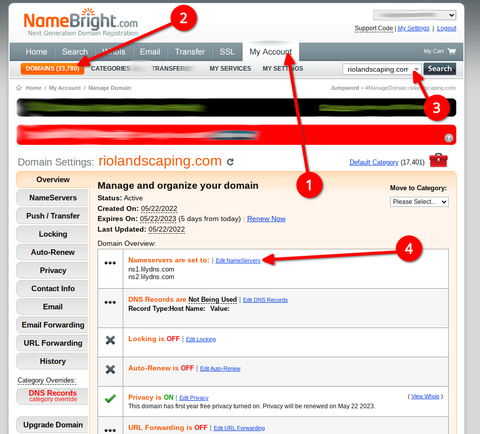 Then enter NameBright's nameservers
